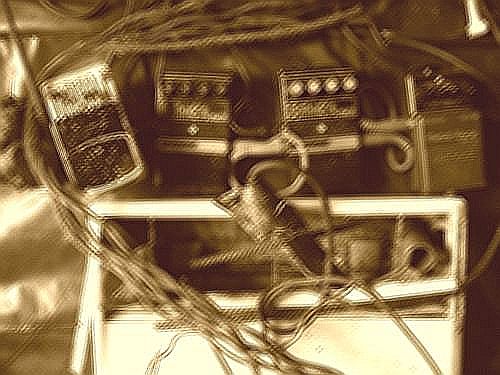 Back home, I began immediately, I plugged in two DOD Death Metal , one equalizer, one vocal mic lying in a radiator, and just listened for hours what was going on, making little modification from time to time. Surely after this walk I was in a kind of alternated state so all was very instinctive, & after maybe one hour I didn't make other manipulation : I stayed in front of the amp all night long, & was very impressed by something I wasn't waiting for: the wall was static , black & deep ok, but I noticed some haunted "voices" coming out of the amp, something very commonly you can hear on many HNW releases, but I never really noticed it before.