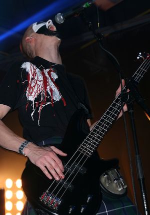 R.MCE: The Corps is an extension of the collaboration with Kevin and Graeme extended to Pete Flett (Holy Mountain), Ross Rankin (Titus Gein) and Matt Evans (Guanoman). I also had costume and makeup design assistance from Vicky, Andrea, Connie, Victoria and Cat. With that team round me I couldn’t fail. There was a strong sense of what everyone’s purpose was that weekend and we were augmented by twelve participants of differing abilities. My roots are industrial with Test Dept and Laibach featuring strongly. Mix that in with the metal that Kevin and Graeme bring and the result is our set at Supersonic 2010. Last Christmas was the first Drum Corps in Glasgow and it was a huge success. We’ve been asked abroad and I also have another Glasgow show in March 2011. Join the Corps!