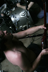 Of Sludge & Atmosphere [2007-12-14]Mouthus create an unequal & dense mix of noise, suffocating guitar tone, electronics & battering rhythm. But also have the ability to be able to summon up more uneasy/alien atmosphere mixing together ritual, ambient, acoustics guitars and avant-rock elements into a distinctive blend. This year has seen them released two of the years highlights in the form of the sludge brain melting wonder that is Follow this house and the more darkly melodic yet still atmospheric and at times devastating Saw A Halo . One half of Mouthus, Brian Sullivan, kindly agreed to give me an e-mail interview.m[m]:How did you both first meet? & what made you decided to form Mouthus? Brian Nate and I met through Karl Bauer of Axolotl, a mutual friend of ours. We were all playing together and Karl left for San Francisco . Nate and I decided to keep playing together, so mouthus came to be. m[m]: Was Mouthus your first musically project? & what's the origin of your name? Brian It is neither of our 1st musical projects. We have been in various bands since we both have been playing music for most of our lives. The name came through me mishearing something that Nate said. it sounded better than what he said so we stuck with it.m[m]:Who does what in the band musically wise & do you both jointly write the material? Brian Nate plays percussion ,electronics and keyboard, I play guitar, keyboard, woodwinds and vocals. I might play some percussion on overdubs. we write together. one of us might have a part or idea before, but it changes once its brought into mouthus.m[m]:This year you've brought out two very different albums; Follow this House which shows your sound at it most punishing and brain melting & more recently Saw a Halo which though is still intense features more layered vocals, dark melodic elements and acoustic guitars- Do you think you'll continue to see-saw between extreme & more melodic albums? Brian I don’t think of it as see sawing, follow this house was done in our studio w/ all keyboard overdubs and the basic tracks are relatively old [from around spring 06],but they all came from a certain point in time, and I suppose it was a pretty intense time judging from how the album came out in the end. Saw a halo was built in the studio - our 1st time in a real 24 track studio - and was the product of having that liberation of multiple tracks and just being in a different environment than we usually record in. I cant really project how the next studio album or the next time we recorded album will be, only that moment will dictate where the sound will go. m[m]:The running order of each album seems sequenced for maximum effect - do you story board each album? And do you have visual or a concept behind each one- if so what was the concept, etc behind Saw A Halo & Follow this House? Brian I don’t know if storyboard is quite the right term, but it is something to that effect. That is why on the previous question follow this house sounds the way it does. We record all the time and tend to pick tracks that will mesh well with each other besides just being strong on their own. We do want a certain cohesion to an album, not just a random grouping of songs that happen to be recorded in approximately the same time period. Sometimes cohesion has its downside, there are many songs that we feel are good, but never made it to an album because they did’ nt fit With how the album was shaping itself. but "for the great slave lakes" was a solution to that. those are all tracks over a 3 year period that never made it to an album, but we had so many that we could shape some theme out of the unused tracks. As for saw a halo, that was all done in a 4 day period in close quarters and under time constraints, so the cohesion or the concept was shaped out of the parameters we were working within.  m[m]:Album artwork seems very important to you too, with both Follow this House & Saw a Halo having there own distinctive design & feel to fit the albums perfectly- how do you go about selecting art? And what is the out of focus picture on the front of follow this house? Brian Glad you like the artwork. we do all our own. Nate does all the Mouthus records artwork. I do the photo stuff saw a halo I did wit the stipulation that it would’ nt be a line drawing[which Nate usually does] or a photo[which I usually do]. Selecting art? I just try stuff out and see what fits the sound. Nate does the same, but he's more visually prolific and has a lot more options within his artwork to choose from. The out of focus pictures are not out of focus on Follow this house cover, there polaroids of topographical transparencies that I layered and shone lights through. m[m]:Has it been difficult to recreate your sound in a live setting being a two Piece? & tell us for those who haven't seen you live how the shows flow? On the subject of live shows- any plans for any European shows? Brian We tend to work roughly off themes we have recorded, or as of late, improvise from a selected number of ideas that we haven't recorded. Live shows flow very differently from night to night, which is good, It keeps us on our toes and interested in what we are doing. some nights we take our time building up energy, let it move slow and evolve. Other times we just charge out of the gate and see what happens both can have positive or negative outcomes. you can be relaxed and loose and not have the right momentum or energy to keep that moving. Other times that kind of mentality can create a piece of music that couldn’t even fuck up if you tried. As for europe, we are planning on coming back soon, maybe for a short tour in the late spring and then hopefully a longer one later in the year with the loosers. Thanks to Brian for his time and effort with the interview- Follow this House is out on Important records & Saw a Halo on Load records. All pictures used in the interview were taken at 2006 bbq of the beast by Dustin Fenstermacher © and are used 