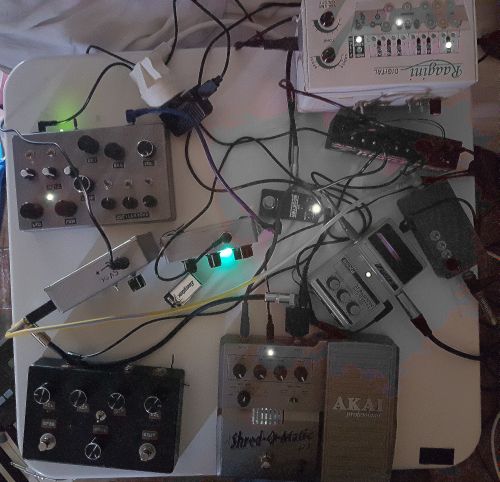 M[m]: I believe you use numerous chains of pedals to create the projects extreme thick and crude sound- do you constantly have these set up ready to go, or do you arrange them as & when you create noise?