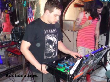 Ohio’s Pusdrainer delivered some no bullshit power electronics. He performed some really stripped down repetitive industrial noise, with vocals that had an interesting reverb effect to them. It almost sounded as if he was shouting through water. Sometimes I get fed up with the gimmicks and arty pretentiousness of music (and noise) and need to listen to something fucking primal and aggressive to set me straight. When I get in that mood, I can imagine throwing on some Pusdrainer to lift my spirits.