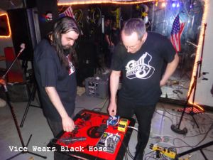 Being an fan of both Richard Ramirez and Sam McKinlay, I was highly anticipating Vice Wears Black Hose and they did not disappoint. Like a couple of wise noise sages they quietly stood manipulating their hardware to create some thick static crackle and crunch. The setup was very minimal with Mr. Ramirez utilizing only a mic and two pedals and Mr. Mckinlay utilizing a noise generator and 2 (maybe 3) pedals linked together in a small mixer. It was very interesting to watch the dynamics of the two work together in sync. Mr. Ramirez would tweak the knobs ever so slightly on his pedals, while Mr. McKinlay stepped back to absorb the sounds.Then they would reverse roles, with Mr. McKinlay tweaking pedals while Mr. Ramirez stood in contemplation. It was simultaneously a meditative, yet intense spectacle. I challenge anyone who thinks HNW would be a boring live affair to witness these two masters at work and leave with the same opinion.
