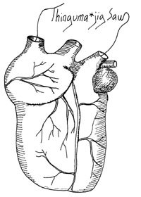 TJ Thinguma*jigSaw is a portmanteau we came up with (a word combining several words). We wanted a word that was mysterious, yet had a child-like and grim touch to it. This kind of wordplay is inspired by our fascination with James Joyce and Lewis Carroll.