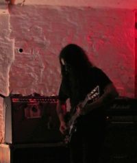 Next up is Wode; they seem to be a very mysterious trio, hardly any information online about their existence or who they are, but they certainly made their presence felt. On first appearances you would not expect the black metal onslaught that was to be spewed forth, playing guitar and drums at ridiculous speeds to create a whirlwind of noise topped off with typically anguished vocals. Very entertaining indeed, but again only a few audience members were actually getting into the spirit of things, a wide circle opening out around the stage. But despite this Wode put on an excellent performance, their sound could be likened to such post-black metal bands such as Wodensthrone and Wolves in the Throne Room, definitely worth keeping an eye on for the future.