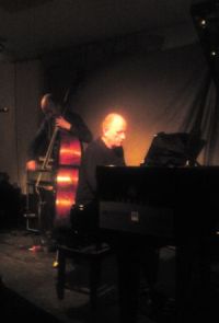 This certainly seems to capture something of the character of change and transition which the Necks performances revolve around. To lose concentration even for a moment is to awaken in a different place. And yet even if one concentrates to the maximum degree the ratio of that change is still elusive, locked as it is in the near telepathic interaction and understanding between the players. A case in point being during a particularly intense period the tail spike on Swanton’s bass collapsed causing him to have to lay it on its side to refit it. The operation lasted all of fifteen seconds upon which he seamlessly took up the rhythm again without so much of a hic-up in the overall sound.