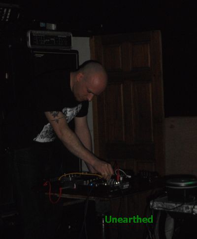 Opening this great evening of mainly Hash Noise wall is London based project Unearthed. Like many HNW projects this is a one man project, and the one man behind this project is London based Robert Meldrum who runs Spider tapes who have organized tonight’s great event. Meldrum is also behind horror bound Harsh noise & sinister ‘n’ caustic drone project Corpse Candle, and old movie sourced Harsh noise project Ghoul.