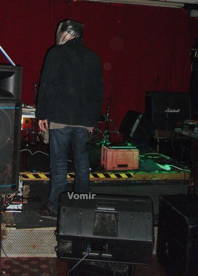 Tonight the project have a 'go' at a mixture of HNW and building Harsh noise texturing ‘n’ shift. The projects tonight a one man band, though in the past I think the project has had more members. Once again this set features just a single twenty minute track, and it all starts off with a thick accelerated phone ringing like purr, which has been turned down a few notches. Underneath the constant loop there are these waves of noise currents that seem to get more prominent & noticeable as the track progresses. Ever so often these waves edge towards higher pitched noise burns, but mostly they stay fairly mid-range but active in there feel. Towards the end of the track the projects one & only member, who looks a little like a young Geddy Lee of Rush fame, appears from behind his table of pedals with a metal comb that’s linked up to his equipment….firstly he attacks a Michael Flatly book, then random objects and lastly his long hair. This 'comb' action creates some quite effective Merzbow like trail blazing like noise pitchers. This set was certainly amusing and active, but for me I felt it was a little too active & a bit too harsh noise bound for my liking, I also felt it was sad that cementimental didn’t have the patience to let the 'wall' hang around untouched for any length of time.