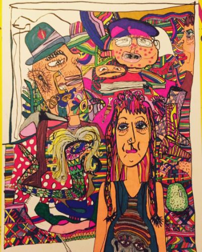 Molly I like to draw, make prints, paint badly, and for the past 15 years or so. my main focus has been on making quilts, which I find to be a very satisfying pastime and a bit of side biz. Musically, everything I've been a part of can be traced back to the Residents because it's the people I knew from back in the Ralph America (Ralph Records) days. I worked there for six years and spoke to fans every day on the phone to take orders- this was clearly pre-internet when we still mailed out a paper catalog. I became friends with many of the people who would order because Residents fans typically order one of everything, so between the band's prolific output and the beautiful loyalty of their fans, I became friends with quite a few folks. Over the years I have worked with Shawn Franklin of The Scallions, and for the past several years I have worked semi-regularly with my good buddy Ostrich Von Nipple, who I was also friends with back in the '90s. We have worked live together and have also put out a 7" on Psychofon Records. We also recently contributed a song for the Hardy Fox tribute that Klang put out. I also had a little combo called Dirty Titty with my good friend Michael Goldman, who is a multi-instrumentalist about town. We met pretty faithfully for about two years and he'd make up melodies on the guitar and I'd make up songs. The process was super satisfying and I had really no desire to play out. He kind of had to lead me to that. We played out once, and it was fun, but then we casually abandoned the project. We may pick it up again someday. Hard to say. Otherwise, I occasionally will do shows locally with my friend Jeffrey Butzer and various people for tribute shows when someone dies. Daniel Johnston is up next. RIP Daniel!