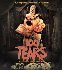 Several years before the appearance of Art the Clown & the Terrifier franchise, there was another brutal, gore-loving killing machine clown on the block. Gurdy- is a plump, white-suited, black balding wigged, and huge hatchet-carrying killer- who's the star of 100 Tears- which blends extremely brutal stalk ‘n’ slash, with investigation thriller, and light touches of humour. Here from Unearthed Films is a Blu-ray release of the film, taking in a director's commentary tracks, and a few other things.