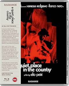 A Quiet Place in the Country is a late 60’s blend of mystery thriller, Are-they-mad-or-not psycho drama, and uneasy/ arty horror/ ghost story. The Italian/ French production features Franco Nero and Vanessa Redgrave as its leads- each giving emotional & physically intense performances- as a painter, and his lover/ business partner. Here from Radiance Films, is a recent Blu-Ray release of the film- taking in an HD scan, a new selected scenes commentary track, and a few other new & archive extras.