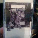 This slim cassette (c20) delivers 2 side long tracks of relentlessly pummeling, harsh noise mayhem. Side A is swarming hive of junk metal manipulation, sputtering electronics, squelchy synth tones, crushing low end crunch, high end feedback, laser-like blasts, and quick stop/starts, all constructed and deconstructed with surgical precision at break neck speeds. Each sonic component collides and clashes, decentering the listener with a constant barrage of noise coming from all directions. While the piece features a balanced mix of electronics and metal abuse, the clang and bang of the scrap metal really stands out to me on this side. It unfolds like metallic cascading waves….crashing and collapsing, almost rhythmic sounding at times.