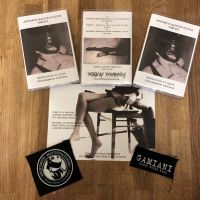 This cassette appeared on Stockholm based Ominous Recordings- with the tape coming in transparent oversized wallet case, featuring double-sided pro-printed artwork. As well as two fabric patches-one for each project. The monochrome artwork features nylon & masked fetish focused images. This had an edition of 20, which have sadly now all sold out- so ones only option is download from the labels Bandcamp.