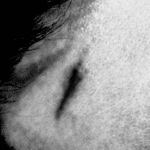 The hand written CDR comes in a mini clear plastic sleeve, which features a single folded inlay. This features on it’s front a blurred black & white picture (that’s either a close-up of a scab & hair, or a weird/bleack sky scape). And on it’s back text about the track( it apparently started off as part of 1000 member HNW Facebook comp) & the project.