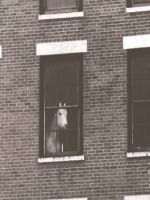 I’m reviewing the C120 version of the release- this came in an edition of 17, and sadly these are all gone from the label- though who knows you might be able to source a copy in either discogs or via noise focused mail order….but of course, you can still download the release. The plain black tape comes in a monochrome single-sided sleeve- on the front cover we get a rather striking photo of a horse at the window of a block of brick built flats. And on the inside, we get a grainy snap of a shadowy two-story building at nighttime, with white text over the top.