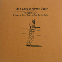The cd cover proclaims: “A Binaural Sound Movie In San Martino Spino”, and thats exactly what it is. Halfway through my initial listen, I was quite unimpressed and confounded by what I was hearing; but soon after that, everything clicked into place for me. In the starkest terms, the album consists of Bob Corn performing songs; recorded by Uggeri binaurally and interspersed with sections of dialogue and field recordings (literally). Bob Corn sings simple, emotive songs, accompanied by his guitar; reminding me of Will Oldham - except with an Italian accent. Uggeri’s role here, is beautifully listed as: “binaural field recordings, steps”. For those not in the know, binaural recordings aim to replicate sounds in a stereo-field as heard by human ears - to the extent that sometimes mics are even attached to the ears of dummy heads, to create the most realistic stereo-field (it’s for this reason, that the inlay says “Please Listen With Headphones”). Thus, despite a few “straight” tracks of Bob Corn performing, the pieces which stand out are those where Uggeri’s role is felt. This is amply explored by the start of the album. After a minute or so of machine noises, we hear traffic crossing from speaker to speaker, the crunching of footsteps and Bob Corn’s approaching vocal. His unaccompanied voice spirals around the stereo field, as either Uggeri circles him, or vice versa; with the echo of his voice introduced for further spatial confusion. This is a trick repeated across the album, to varying degrees; though, as I said above, there are also “straighter” tracks, like “End Now”. The songs are mixed in with long sections of recorded dialogue, and ambient sound; creating a genuine sense of an “audio diary”, or indeed a “Sound Movie”. To my ears, the whole thing has a dream-like quality to it, so perhaps thats a better notion. Thus Uggeri’s role is something like a real-time processor, as well as a collagist and producer. This relationship between performer and recorder is often blurred across the album, but nowhere more beautifully than on “Call My Name”: here, Uggeri walks around Bob Corn as he plays; until your brain suddenly realises that his scuffing footsteps are providing a rhythmic accompaniment. Its incredibly clever and effective - it’s years beyond the average ‘folktronica” set-up.