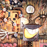 The thing that’s most rewarding and compelling about the album as a whole is you just don’t know where they’ll twist off next, all of the tracks moving like a bizarre sonic sound ride, so you one minute you may be brooding in sinister dark carnival dread the next moving into heady ethnic lined drones undertied by world rhythms. Or stepping carefully through easy listening textures turned and bent to the dark and twisted side before dropping into evil sound drone pitched black lined with strange bubbling sounds and demented creepy laughter. I guess another comparsent would be volcano the bear for the often weird world music edger’s, strange banks of vocal harmonies and hypnotic folk strumming. But really and truly with A live coal under the ashes Contrastate have built their own strange very English, often dark but also a times brighter psychodelic universe that’s total and utterly of their own creation.