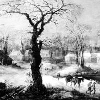 For the cover artwork, we have a monochrome recreation of a painting of several figures walking through a rather stark-looking village- with a huge and towering leafless tree in its middle The release can be found just here.