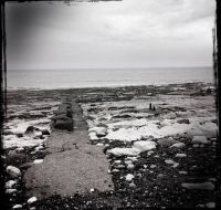 Cover artwork for this release is a monochrome photo of a seaside tide out full of barren rocks, stones, and a concrete walkway. The album can be found here