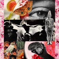 The release appears on Massachusetts Mutual Aid Records. The black-on- black CDR comes in a plastic sleeve- the front cover takes in colour collage, taking in someone holding a brain, a bat, a butterfly and venus fly trap, and eye- with a backdrop pink/ red wash, this continues on the back sleeve, with 3" Vinyl sliver vinyl sticker feature the cover art and a Bandcamp code. This physical edition is of twenty four copies, and as of writing the label still has copies.