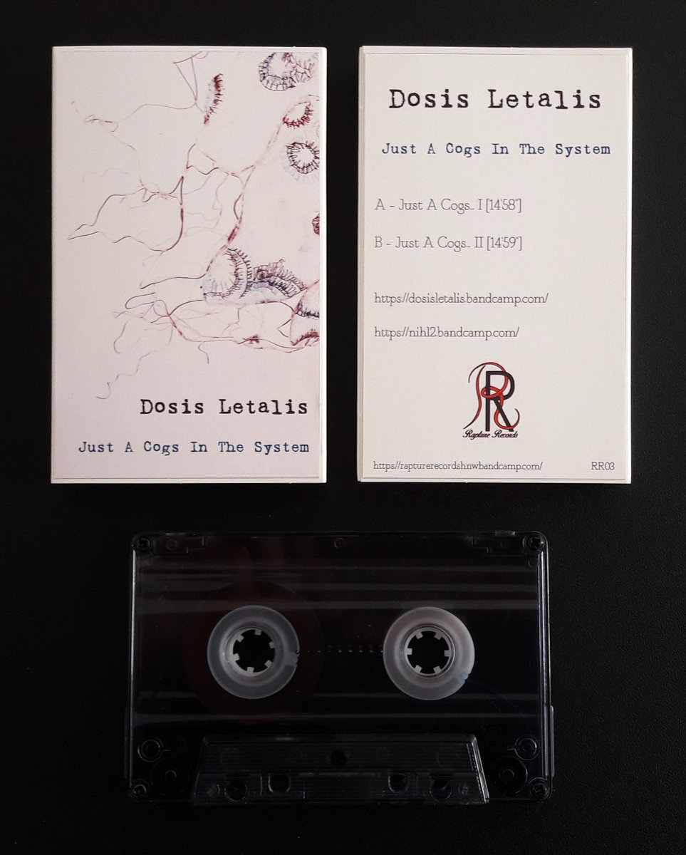 Each side of tape features a single 15 minute track, and first up on side A we have "Just A Cog I". This track brings together a few layers of tumbling & circular like noise textures, which of course nicely fits the tracks title. We have a slightly judder & tumbling aquatic low end, & a few layers of thinner ‘n’ crisper mid range. These are seemingly running at very slight different speeds, and this creates this feeling of constant pressing descent- though in reality I think the whole thing is fair set, save for a few shifts in the lower end.