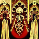It comes in a very impressive arty full colour book bound gatefold CD case decorated with Jesse Peper excellent surreal, dark and religious tinged artwork. The tracks here are fairly evenly split between beatdriven often vocal-less tracks to more sprawling and involving effects ladened spoken word constructions, with the odd nod towards more tuneful and bizarre pop constellations. The real highlights here are the spoken word tracks were Ka-spel picturesque and bizarre word-play/ stories slide by your ears in his distinctive often swaggering English tones. Sadly the intresmental tracks for the most part feel a little uninspired and throw away, never really developing much beyond electro beatscaping and psychedelic electronics by-numbers with little memorably about one from another. The stand tracks here for me are; And the Stars with it’s lost and lonely synth melody, radom electro sounds and Ka-Spel intoning bizarre and oddly touching dialogue about spacey lost love. or Revolution 834 with all manner of bizarre backwards vocals, funfair sounds and layers of other bizarre audio flotsam and jetsam with Ka-Spel reappeating '834' in a strange mantra way along with other fragmented dialogue.