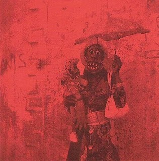 First off it’s worth mention the very original, distinctive and very unlike HNW artwork. The cdr comes in a red paper sleeve that features a drawing of an African looking women with a weird face mask on. She's holding either an deformed baby or effigy in her arms, and she's standing under a umbrella against a graffiti scrawled wall. The artwork is a great mixture of Haitian tribal art and gritty yet slight abstract urban imagery; this look is followed on in the other three releases put out thus far by the label.