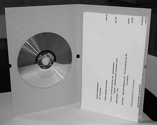The packaging seems to be a piece of about A4 size cardboard with a few holes punched into it. It’s then been folded in half and the details of the recording and label are embossed in the back. Which makes it all rather difficult to read.