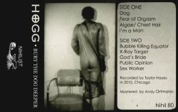 Each side of the tape contains a track that shows Hogg's best efforts. "Dog" and "X-Ray Target" are pretty enjoyable and show what the duo is capable of. "Dog" is built on heavy fuzz and decent drum work, and help draw the listener into a head nodding haze. "X-Ray Target" uses a drum machine and heavy bass to elicit an industrial vibe inspired by the likes of fellow Chicagoans Big Black. Unfortunately, though, the rest of the sides get goofy and irritating.
