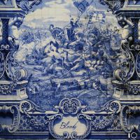 Cover artwork wise we have a photo of a blue and white tile, featuring a crowded battlefield- with horses, fallen bodies, dust, and wind buffeting flags- with the album's title below it. The release can be heard/ downloaded here .