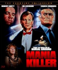 Maniac Killer is a lopsided & largely cackhanded blend of occult horror, bumbling action, and mad doctor mystery. The film appeared in the late 1980’s- it’s a French production, with very stilted and dodgy dubbing. And, depending on ones tastes it’s either an entertaining slice of euro trash, or an unevenly paced mess that tries to juggle horror and action genres badly. Here from Full Moon Features is a recent Blu Ray release of the film, which features just a new HD scan of the film and a trailer reel.