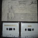 Onto side two & we have two tracks by Koufar. First up is the track ‘Breed’ which starts out with some rapid Arabic male talking which is latter joined by a female interviewing voice also specking in Arabic; these two voices are swamped in threatening manner by building then retracting noise swarms. With-in a few minutes it kicks in with a really nasty & murderous series of power electronic stabs, jitters & grinds of noise that are all topped off with really nice vein bulging vocals. Lastly we have the track ‘Patriot’ which starts out with sad & beautiful mournful eastern female vocalising samples that are under-cut by distant gunfire or chopping tones & sudden feedback risers. As the track goes on the feedback waves & noise currents build & start to cover the samples, then the nice angered & vein bulging PE vocals seer & attack your senses over the top of the mix of noise matter. The tracks backing effectively switchers between the samples haunted female vocals & the more searing noise attacks as the brutal vocals slice in & outof the track like a rusty knife. I really like this tracks balance between haunted emotional atmospherics & all out head cracking anger.