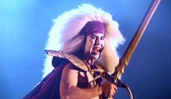 Erotic Ghost Story II runs at one hour and thirty-eight minutes. And it’s fair to say it takes a little while to get going/ onto our lead characters. As we get five minutes of flesh-bound flash to the first film, with Mr Voice over reiterating the plot. Then we moved to a highly stylized/ theatrical introduction to our lead villain/ demon Wu-Tung(Anthony Chau-Sang Wong) who switches between moody big-hatted/braded-haired, and white face painted big-haired, purple Banda wearing with huge shoulder pads and a cape. With yet more explaining text from Mr Voice over, regarding battles & a bright purple light put into a just-born baby.