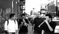 Fly Pan AM - Ceux qui inventent n'ont jamais vecu (?) [Constellation Records - 2002]Welcome in Fly Pan AM territory. Fasten your seat belts please. Thanks you very much. These guys really like to confuse you. They even had me completely fooled for a while in a ‘Andy Kaufman’ kind of way: I was listening to “Ceux qui Inventent…” for the first time, immediately hitting “play” before even reading the song titles or having a good look at the artwork, and then suddenly, in the middle of track #3, there is a big ugly one-second long silence. Of course my first reaction was “Oh great, I have a defective CD” but after listening longer I realized that the whole album is full of those things – the band calls it “self-sabotage” and, once you get used to it, it becomes as much part of the music as the guitar-bass-drums are.It’s hard to fit comfortably Fly Pan AM in any existing musical genre without feeling like it doesn’t fully works. If I really had to give a short description it would probably be something like “instrumental stuttering rock/dry funk/musique concrete fusion”… Meh! The band usually plays fairly simply structured (but with a few twists) and repetitive pieces generally composed of a solid lock-groove foundation held by the bass and drum with clean guitar motifs woven into the mix. At times the band can be surprisingly energetic; for example on the second track what started as a moderately calm song based on a funky 4 notes motif suddenly goes up a notch in ferocity thanks to slapped bass and weird sounds that would make Thurston Moore (Sonic Youth) proud.This band likes experimenting on the song level, but also in the post-production stage with all kinds of noise and tape manipulations... If the music were a well-oiled machine, they would take a handful of sand and throw it in with a grin. This gives the album a particular texture and makes it unpredictable; with strange noises coming at you from every direction – one time I was sure that someone was using a vacuum cleaner in another room - and many doubts as if what you are hearing is normal or if your stereo equipment is on its final breath, the band does everything to keep you on your toes and it works in the sense that it adds an interesting layer to the album instead of just being an annoyance.This is a B+ album from Fly Pan AM. It is very good, no doubts about it, but I believe that it is not the best they can do. What they show us here is that they have the ideas and the skills; now all they have to do is sharpen their songwriting abilities a little before they can give us a truly great album.Post Scriptum: As usual I must mention how great and original the packaging by Constellation is. Good job guys.
