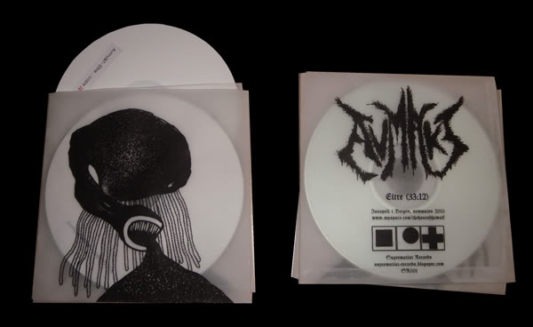 Avmakt - Eitre [Suprematist Records - 2010]Avmakt is the latest’s project from one of the prolific and quality bound artists in working in the European noise scene today; Andreas Brandal whose also in Flesh coffin, Hour Of the Wolf, Drevne Bolesti, and Museums of Sleep. This new project is a quite atmospheric lined take on HNW with some subtle junk metal textures & dramatic/ dark noise moments. “Eitre” is the second release by this new project and it appears on this new Serbia based label. The CDR comes packaged in a tracing art paper sleeve, and features a drawing of deformed long necked monster vomiting up pile of black sludge- this rather brings to mind a crude & monochrome take on the creature from Francis Bacon’s 1944 Triptych painting. Sonically on offer here is one long thirty three minute track, which starts out with some subtle shifting, sinister junk metal textures & improv like movement. Then pretty soon it slides into a thick ‘wall’ of roasting and galloping noise that’s underfed by eerier noise movement and fairly subdued junk metal matter. The remainder of the track sees Brandal dramatically shifting between different grains of ‘walled matter’ with atmospheric sound currents running through them, and slight dips into more creepy/ stripped improv like moments too- but for the most part this is very thick 'n' brutal Avmakt is a project that’s trying to put a different/more dramatic or atmospheric spin on the art of wall making. And with “Eitre” Brandal offers up a very worthy and well thought-out piece of shifting and edgy brutality. Go get it while you still can!      Roger Batty
