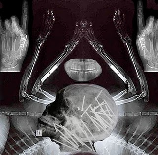ARU - An Industry Of Metals [Dubuque Strange Music Society/Feeding Cotton Recor - 2010] | Here’s a cryptic cdr… The confusion starts with the packaging, which at first glance looks a little “shonky”: a folded insert, behind a front piece. This front piece is a rough square cut from very thin sheet metal, with artwork taped onto it; the fact that its actual sheet metal is nice, but the fact that the artwork is taped on somewhat cheapens it - maybe I’m being overly picky. The insert, though, is very elegant indeed - a two-sided sheet with rather beautiful imagery. One of these images looks a bit like someone photocopied a pile of rusty nails; the other looks like an old futurist painting - both are black and white, and filthy. The genius of the insert lies in the way its folded. Maybe I’ve had a sheltered life, but its the first time I’ve seen this done; its nothing spectacular, but its a very simple solution to holding a cd, in a sheet of paper, in a cd wallet. As for the album itself, I feel like I’m missing out on something - it seems as if a lot of thought and care has gone into the structure and pacing of the cd, yet the sounds themselves are somewhat underdeveloped and uninspiring. All of the tracks are constructed out of loops, feedback, percussion and noise; and, whilst its unclear, some of the sounds may be actual recordings of junk metal and engineering machinery - its hard to tell. The production is quite low fidelity, which blunts some of its power; and the saturation further restricts the already limited palette of sounds. Saying this, there are some nice textures and moments - track 24 is built around a pounding drum beat, which gives the ears a welcome break from the previous tracks of trashy noise; and track 3 has a suitably piercing blast of treble skree. But, I have to say, my ears find little joy to latch on to. If some of the tracks are indeed unprocessed recordings of machinery, that would be technically interesting; but its still not very engaging. With the prominent percussive elements, it actually reminds me of the recent Cut Hands album; but with far less power, intricacy, energy and ideas.