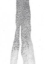 Ruine - Nous Irons Plus Loin Sans Avancer Jamais [Self Release - 2012]“Nous Irons Plus Loin Sans Avancer Jamais” is the third release from this relatively new project from the always creative & often progressive french HNW artist Julien Skrobek. The release offers up four 10 minutes slices of often stark yet varied walled noise, and the releases title roughly translates to “We Will go Further Without ever Advancing”…which is quite a nicely bleak & hopeless title for the release. The release comes in the form of CDR release which comes inside a dvd case that features on it’s front cover a great simply & stark line drawn picture by Andreas Brandal( of Flesh Coffin, Hour Of The Wolf, ect)- the picture is of tree trunk shaped like flowing mass of blacked thick dashers that slowly lessen then disappears towards the bottom of the split trunk like shape- I think this nicely captures the stark & often slightly caught & panicked urgency of most of the tracks on offer here. Also with the DVD comes a poem by surrlist French poet Guillaume Apollinaire- the poems called "Toujours"( which means Always in english ), and the peoms first line is roughly the title of this release. So moving onto the ‘walls’ themselves , and as already mentioned there are four tracks on offer here, each is untitled & each lasts dead on the ten minute mark. The first track is a mixture of repetitive rubbing ‘n’ muffled texturing which laid under by this stark, juddering ‘n’ slightly panicked static texture- to me the track brings to mind something endless trying to get up a slippery or smooth surface, but never getting any further no matter how much it tries. Track number two is built around taut higher pitched fixed juddering ‘n’ grating tonality that’s underfed by a slower & less urgent muffling scuttling tone- again the track brings to mind something been stuck & trying to get out, but the lower tone suggest it’s starting to tire of it's efforts. Track three presents a more chilling & claustrophobic feel, yet there still some tension & lessened panic here. The ‘walls’ built around a bleak flow of hacking & juddering cold static textures, which have some crisper that equally bleak tonality flowing under them And lastly track four is built around revolving static like loops of texture that weaved in by harsher ‘n’ hissing grains of static. And to me this track suggest all panicked is over, and your slowly but surely been swallowed & corroded away by brutal crackle & hiss of the static or your situation….the track both pained & oddly soothing too. This is yet another very worthwhile & brutally rewarding release from Mr Skrobek- it’s always a pleasure to listen to & review his work, as he clearly puts so much thought & effort into everything he puts out, and with out doubt he’s one of the most consistent HNW artists working in the European walled noise scene.