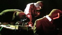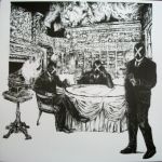 Nihilist Assault Group & Blue Sabbath Bl - Planned Obsolescence [Gnarled Forest Recordings - 2009]This collaboration between Nihilist Assault Group and Blue Sabbath Black Cheer is very smartly packaged; with nice, detailed drawings on either side of the album sleeve, and a card insert. One side depicts NAG as gentlemen of noise, listening to a fiery gramophone; resplendent in an archaic library room which is also aflame. The other shows BSBC as charred bodies in display cases, in the same room; with the gramophone and record now smashed on the floor. (Though, saying this, there are only two charred figures and yet BSBC are listed as a trio on the insert, so…?) There is just one track, “Planned Obsolescence”, split across both sides; and its as monstrous as that sounds. There’s no indication of how this track was performed or constructed, but my ears suggest its some kind of remote collaboration, rather than a live recording. The piece starts with about one minute of silent vinyl, before some rattling noise textures creep in and gradually build, till the track erupts into a furious skree; “Planned Obsolescence” then stays at this pitch of intensity until its final seconds. In a nutshell, the track can be very simply summed up as a wall of noise, from which little details emerge. It manages to combine a monolithic, over-powering, static feel, with frenetic and chaotic elements that flit in and out of the speakers. Its harsh and brutal, but with Mark Durgan involved in the recording, as part of NAG, you know that there will be a exemplary level of attention to sound and timbre. Unfortunately, its difficult for me to say much beyond that (indeed, I can’t really even confirm that there is “an exemplary level of attention…”), because the vinyl pressing - or at least my copy - is really very quiet. I’ve had to double my usual playing volume, and the end result hasn’t exactly been a pristine sound-field. So it feels difficult to give a satisfying response to the album, even though it does sound like there is a great piece of noise-making in there. Its entirely possible that this is a deliberate, conceptual ploy on the part of the artists; but…      Martin P