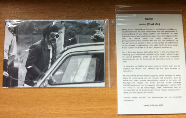 Goghal - Horion [Sweet Solitude - 2012]“Horion” is the sixth release in Sweet Solitude’s 'Shades Of Grey' series- each title in this series finds a HNW artist theme their release around a famous murder case or murders. This release finds Belgium based one man HNW/ Harsh Noise project Goghal sonically tattling the case of 1970’s Belgian murder & criminal Freddy Horion. Sadly all the text about the Horion case on the back of this release is written in Dutch, and as I don’t speak or read Dutch… so I had a little dig around on the web instead with Google translator locked ‘n' ready. Seemingly in June 1979 Horion and his accomplish Roland Feneulle, broke into the garage of Roland Steyaert Amandsberg- they murdered five of the family members as well as raping one of the families daughter. The pair escaped with 4,000 Belgian francs and a handful of jewels. Horion had also shot dead a dead the manageress of a shop in Ghent in February 1979. In 1980 Horion was convicted of six counts of murder, and sentenced to death by East-Flemish Assizes. Later this sentence was changed to life imprisonment- Horion is still in prison now, through he’s attempted to escape four times & has also made numerous appeals to be released. He’s often known as the 'Sunglass Killer', as he’s always worn sunglasses when his picture have appeared in the press. On offer here is a single & self titled 59.44 minute track. And it smashers straight into the ‘wall’- which is a mixture of a galloping ‘n’ rumbling yet slightly swirling mid to low end noise texture. This is ebbed & battered by this slightly higher toned jittering static tonality. The ‘walls’ very thick & battering in it’s attack, through there a few subtle textural shifts here and there along it’s near on hours length, and also from time to time he thins down one or another of the tones to great effect too. All told it’s a brutal yet rewarding slice of ‘wall-making’ which finds Goghal creating a mainly fixed yet subtle layer shifting slice of HNW. This is my second taster of Goghal’s work, and once again I’m impressed by its distinctive sound, and it’s brutal/dense attack. So “Horion” is another worthy addition to the 'Shades Of Grey' series, it’s just a pity the back text couldn’t have been translated to English…so us none Dutch speakers could understand more about the case.      Roger Batty