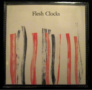 Flesh Clocks - Columns Of Blood (For Adriana Varejão) [Ink Runs Recordings - 2013] | Here is a stylishly packaged cdr on Ink Runs Recordings - the resurgent label run by Charlotte and Julien Skrobek. Starkly minimal and beautifully designed, the words and imagery are printed on transparent paper and textured paper (respectively): very simple, unadorned and effective. Flesh Clocks offer one track, exactly twenty minutes long, called “Columns Of Blood (For Adriana Varejao)”. The back cover of the cdr tells us that the Skrobeks have divided their roles in the simplest manner: Charlotte is responsible for the low frequencies, and Julien the high. As if to emphasise this, the first five minutes are low frequencies alone; before the high frequencies jump in exactly on the five minute mark. The low frequency wall is like a muffled, distant waterfall; with a hard bass undercurrent. The power of this water flow is unmistakable and clear, but it remains deadened by distance or an obstruction between itself and the ear. When the high frequencies come in, they bring a much more different sound world into play. Here, the metaphors must be of rock and stone; the high wall sounds like rain of the smallest gravel - “gravel” taken to its finest, most exquisite, crystalline sense. As another stark contrast to the low frequencies, the sound of the high frequencies is close-up, microscopic, very sharp and precise. Layered together, as they are for the remaining fifteen minutes, the two walls combine to produce an incredibly strong, distinct wall. Whilst it is hard, there’s no real sense of brutality; possibly due to the allusions to abstract art, science and formality in the artwork, colouring and guiding the listener’s perception. It does seem to demand a detached, contemplative listen. Ink Runs Recordings has been producing some great work of recent and this is just another example. “Columns Of Blood (For Adriana Varejao)” has a very distinct, idiosyncratic feel to it; helped by its unusual formal gestures: the division of roles according to frequencies and the entry of the high frequencies after exactly five minutes. This, almost “scientific”, approach is new and different; its one of the ingredients which mark out the label as one of immense interest and importance. Another excellent release from an excellent label.      Martin P