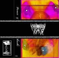 Vomir & Yoshihiro Kikuchi - Collaboration [Gerauschmanufaktur - 2015] | This cassette, on Gerauschmanufaktur is unusually colourful - for a Vomir release. The nicely printed and designed inlay, is a mix of sombre black and white, and translucent, almost trippy, bright colours. There’s a richness and saturation to these hues, that suggests both intensity and indulgence. Vomir is a name that I’ll assume you know, while Kikuchi is a drummer; together, they both simply do their thing - with no compromise to the other. This results in two tracks, across two sides of tape; both untitled. Side A starts as it means to go on. In the simplest terms, Vomir provides some wall noise and Kikuchi drums hell for leather, though with metronomic ruthlessness, alongside it. So the listener is presented with a rhythmically stuttering wall, with snare, hi-hat and an odd percussive punctuation poking out. This punctuation is a drum hit (almost definitely the snare) being delayed and phased. And thats it. Its an odd listen. The drums, mostly buried, provide the rhythmic ‘modulation’ of the wall; indeed, at its worst, the track perhaps sounds like a distorted, over-saturated drum-machine. (The dying seconds reveal the unsmothered drums briefly.) The second side is more of the same - though here the drums dominate. Its tempting to just hear this piece as a saturated recording of drums, but the hand of Vomir can be detected in the crusty wall that lurks under the insistent beats. Here, there are no discernible or showy effects on the drum-kit, instead we have the regular punctuation of a crash cymbal - creating different reverberations and sounds depending on how its hit. Its an infinitely more colourful track than the first piece and creates the illusion that there’s more going on - but really its just as ‘static’ and concentrated. (As an aside, it also conjures up nostalgic memories of grindcore demos and rehearsal recordings.) This is an odd listen. As HNW, it doesn’t really work, yet its methodology stays reasonably close to the stasis that Vomir espouses: neither walls, nor drums, really change or develop. It is, as described above, a wall of noise and drums alongside each other: on paper, its really not that enticing. Yet, curiously, it is engaging. For one thing, I think the brain, presented with such an ‘odd’ coupling, is intrigued to see if and how this coupling works; which encourages a close listen. For another thing, the tape is - deliberately or nay - a tangential homage to the notion that set Merzbow off on his ventures: the idea of extending a blastbeat for a long duration. Lastly, and I mean this in the best way, the project is a novelty; not a throwaway piece of rubbish, but a defiantly unusual recording that just does its thing somewhat quietly.      Martin P