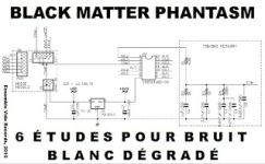 Black Matter Phantasm - 6 Etudes Pour Bruit Blanc Degrade [Ensemble Vide Records - 2015] | Here’s a monstrous six cdr set from Black Matter Phantasm, on Ensemble Vide Records. It arrives in a large, painted envelope, with a stuck on cover depicting a circuit diagram for a white and pink noise generator. Beyond the title, we are offered no other information regarding the six tracks - each on one disc and coming in at around fifty minutes in length, at the shortest; and just shy of an hour, at the longest. If my long-forgotten French is any use, the title translates roughly as ‘6 studies in white noise degradation’; and I’m taking that as a accurate description of what is going on here. I can’t confirm or prove any kind of process throughout the six discs, but I think that’s what’s happening. The first four discs are all really quite similar (at this point I’m very aware of the normal, ridiculous criticism, that hnw ‘all sounds the same’…); I don’t mean that in a lazy dismissive way at all: given that the process is a gradual one, this is to be expected. So, the first four discs all offer the slightest variations on the following textures: fast, galloping bass rumbles, very thin, gossamer-like treble fizz/crackle, and nice, high-mid crackles that becomes more prominent as the discs progress. The only ‘event’, so to speak, is the very beginning of the third disc; which starts with about twelve seconds of very nice, hollow rattling. It’s with the penultimate disc, that the mysterious process really begins to take effect. Here, the speeding, juddering bass gives a sense of providing all of the movement and energy; whilst the fizzy treble and gritty mid-highs almost present a calm stasis. Seconds before the twenty-six minute mark, the wall cuts to an eerie, hesitant hiss, a dirty wash with a distant bass churn; after about a minute, the wall cuts back in again. This is repeated near the thirty-nine minute mark, with the wall cutting to a really very beautiful passage, with nicely strained bass textures. After about four minutes, the bass juggernaut re-emerges, and steamrollers through to the end of the disc. This is all just a prelude to the final, sixth disc, though. The last disc is where the process really takes hold: its also one of the best things I’ve heard in a long time. It begins with staggeringly beautiful, grainy textures; sounding very organic and truly hewn out. This is superseded by a slow bass churn, accompanied by lurching crackle and delicate fizz. This treble fizz grows to dominate the track, in many respects. Around the nine minute mark, there is another ‘cut’ - to a similar ‘wash’, but noticeably more watery in sound; this lasts for around four minutes, before the bass and fizz slam back in. In order not to ruin the rest of the track, I’ll simply say that this wall/cut/wall pattern repeats itself throughout. In total, there are four sections of restrained, washed out walls, cut into the main wall; these range from very watery textures, to almost flanging sounds, to tones emulating a rough, complaining engine. The third ‘cut’ section, which begins just before thirty-four minutes, even pares back further after a while; retreating to a bare dirty wash. Around these sections, the main wall powers on, the bass underpinning the strangely dominating treble fizz. Some of the mid-frequency crackle and flecks are quite special: very delicate and almost having a melodic quality to them. At the very end of the piece, the process reaches a conclusion (though I still have no idea what the process precisely is): beautiful ‘dirt’ textures appear, faltering and staggering; confirming, for my ears, the very presence of the process. From hereon, windy, blustering sounds develop; indicative of a device struggling and dying. This might hold the key to what ‘6 Etudes Pour Bruit Blanc Degrade’ actually presents… So, this set is a bit of a mystery for me. In abstract terms, I think the six discs chart the effects of some process - which I can’t define - on a wall; gradually reducing it to dirty, failing noise. In practical terms, this results in four discs with very similar textures and tones (though there is a sense of things becoming more choppy and disturbed as the discs progress) and two discs where the process becomes noticeable and then overwhelming. The last disc, where the wall is indeed finally overwhelmed, is really very good indeed; as I said above, its one of the best wall tracks I’ve heard in a while - its worth getting the entire set for, alone.      Martin P