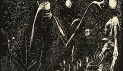 The Wakedead Gathering - Fuscus: Strings of the Black Lyre [I, Voidhanger - 2016]One man wrecking crew Andrew Lampe's The Wakedead Gathering returns for his third full length with Fuscus: Strings of the Black Lyre. His second LP on I, Voidhanger uses grim, black, death metal to tell the tale of a witch hunt gone horribly wrong. Accompanied by vile artwork by Karmazid, this sonic journey of revenge on the righteous skillfully entices and pummels the listener with bleak metal and haunting vocals. Concept albums don't tend to lend themselves to the death metal genre, as the vocals are hard to understand, and the point may be missed. However, with the minor effort of pulling out the lyrics, one will be greatly rewarded, and the full scope of Fuscus will be revealed. The brief, but subtly creepy intro "Into the Gyre" sets the stage with our introduction to the witch. Shifting quickly to a dark, grim blast of guitar fueled death, "Blood From Earth" propels the story forward with a chilling, thick stew of evil tinged metal. Forced off into the woods, the witch promises her return in a deliberate and creepy manner. The layers of guitars are intricate and punishing, and add a disorienting air which helps to build the dark atmosphere. Lowering the tone, and starting with a boisterous bass, the eponymous black lyre makes its debut in "Deepwoods Nonesuch." As promised, the witch will have her revenge, and her horrifying reprisal is marked by the sound of an eldritch black lyre. In an almost Lovecraftian metamorphosis, abducted children are transformed into bizarre, otherworldly creatures in "Amnioticysts." An unexpected synth intro adds to this unearthly piece of the story, and the tremolo'd riff brings the listener back into the grim abode of this evil witch. Low vocals play alongside slow to mid-paced death. Beginning with slow dissonance before picking up into fast, vile death, "Lungwort" brings out all the terror of the witch's abode and her new brood of fully hatched servants. Her message is clear, "You were warned to stay away," "See your little ones/See how glorious they have become." Thick and grimy, this one is reminiscent of Darkthrone's Soulside Journey. However, it's placement in the album and horrifying revelations make it far more serious. Slow, deliberate riffing is the basis for "The Harrowed Column." The witch's army is built and the lyre once again begins to play. Closing out the tale is "An Ancient Tradition." Dirgy and almost wistful, the guitars build the atmosphere for the final act of the witch's revenge. The Black Lyre plays, heralding her return. Armed with her vile brood, she will have vengeance on those that have wronged her. The righteous plan their judgement, unaware of the terror that awaits them. Well written and skillfully played, Fuscus: Strings of the Black Lyre is an engaging tale of righteousness and revenge spiced up with horrifying imagery and vocabulary (as only death metal can do). The accompanying artwork adds greatly to the experience, and they lyrics need to be read for the album to be enjoyed fully. Solid, one-man death metal tinged with blackness, The Wakedead Gathering's newest LP is a great album that will hold up to repeated listening.      Paul Casey