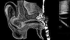 Fouke/Vomir/Dead Body Collection/Sacred - Monolithic Interference [Geräuschmanufaktur - 2016]Monolithic Interference is a recent HNW four way split. It brings together two C30 tapes, and features a 'wall' per side of tape. The release features three seasoned & respected wall noise acts, and one more recent addition to the scene. Taking part here we have: Fouke- which is the Bigfoot themed project of multi project linked & high influential US noise artists Richard Ramirez. Vomir- the notorious Black bag wearing French king of walled noise. Dead Body Collection- the highly prolific, though now sadly defunct, Serbian project. And lastly scene newcomer Sacred Climax – a German HNW project that focuses in on sleazy & porn themed wall-craft. The two pro-labelled white tapes a long slightly oversized A6 clear tape box set- it features a monochrome & murky sleeve that takes in collages of medical diagrams of ears, and related organs. The release comes in an edition of 30 copies, but I’m imagining these would disappear quickly considering the names in involved here. All the tracks here are untitled, and first out of the bag on side A we have Fouke’s track. This opens with the eerier sound of something entering a room, or walking across a wooden floor- which brought to my mind images of a Bigfoot creeping onto a moon-light porch in the middle of the night. Anyway the noise kicks in fairly soon, and to start with it’s built around a worming & muffled low-end judder/ rumble, which is surrounded by this thinner scrapping ‘n’ circularly dragging static noise patterns. As it track progresses more complex layers of the thinner secondary elements are added, as Ramirez skilfully pulls you into the beastly deep woods atmosphere of the track. Also we get some nice weather battering & shifting going through the deeper base element too, all to creating the feeling of being dragged deeper & deeper into the thick forest & the Bigfoots lair. I must confess that Fouke is both one of favourites of Richard’s projects, and one of my all time favourite wall noise project’s- so I’m happy to report this is another highly skilfully & moodily brutal slice of wall-craft, that perfectly summons up it’s theme in such a visually potent manner in ones mind. Flipping over to side B, and we have the Vomir track. And this is fairly typical, though no less brutally satisfying slice of nasty ‘n’ unmoving walled-noise from this French act. It’s built around a blend of crude & unrelenting noise layers- you have: a deep & murky spurting, a rolling rumble, and a series of rapidly chopping yet coarsely thinner noise tones. These are fed together to create a completely overwhelming & suffocating wall of noise, which complete wraps you in it's dense, crude & nasty mass. On side C we have the Dead Body Collection track. This ‘wall’ is a searingly rich & body pinning affair, which brings together layers of rapid rushing & roasting noise matter. Tonal the layer range goes from deep & bass bound though to seared mid-range, with a complete focus on creating rapid & intense HNW. To me the track conjurers up the huge sound & visual imagery of a space rocket taking off, with DBC nicely building up the intense/ face-ripping rush of the whole thing by adding skittering & seemingly speeding sub-tones around the central roaring mass of the whole thing.
