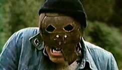 The killer (OGOFF) lives in a broken down wooden shack in the French countryside- he wears a lopsided & bedraggled brown gimp mask, a blue woolly hat, and green Wellington boots. And really he attacks pretty much everyone & everything that comes into his domain, for example at one point he’s attacking Citroen 2CV with an axe.