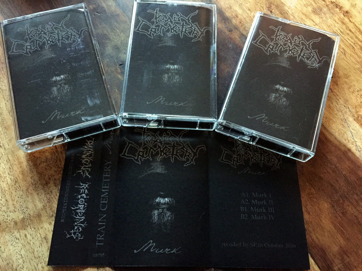 Train Cemetery - Murk [Ominous Recordings - 2016]Here from Russian wall noise project Train Cemetery we have a C60- bringing together a selection of four brutally moody & texturally interesting ‘walls’. Each of the four tracks have running-times between eleven & nineteen minutes, and each is worthy in both their textural reward & wall enchantment. The release appears on Swedish based noise label Ominous Recordings, and comes in an edition of twenty copies, plus a digital download. The labelled cassette features a bleak & moody picture of a grim landscape & horizon. The monochrome cover features a bearded & hooded face coming out of darkness, and grey texts against a black ground. All in all a nicely fitting, simple, yet well conceived look for the bleakly persistent yet texturally appealing ‘walls’ with-in.