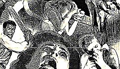 The track kicks straight in with an extremely thick & continual searing maelstrom of hacking meaty descents, grinding static jitters, and distant blunt billows. The wall perfectly fits the stark black & white tone of the film, and the whole thing very much has a continual feasting quality to it- which of course perfectly fits footage of grim gut munching from the zombies. As the track progresses it almost feels as if the layers a blurring & melding into each other, and at moments it feels like possible the whole thing is showering- but I think the reality is that this is fairly fixed & set example of wall-matter.