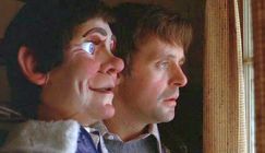 The film opens with Corky- down on his luck trying to do card tricks for bored bar patrons, on his death bed Merlin, his mentor, suggests he comes up with a new twist to his show. Fast forward sometime & we see his now agent Ben Greene taking NBC representative to go & see Corky’s now sold-out show. To start with the rep is unimpressed as he seems to be still doing the same card tricks, then someone heckles from the crowd- the performer steps off stage to confront the person- and we meet Fats for the first time- he’s a dirty mouthed-yet-amusing ventriloquist dummy, with large blue eyes & a creepy smile. The rep is so impressed by the performance, the network decides to sign him- but there’s a problem they want Corky to have a medical, this panics him for some reason- so he escapes from the city to hide away in his old home town- here he re-meets his love crush, who now runs a riverside lodge.