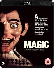 Magic - Magic( Blu Ray) [Second Sight - 2020]Before Annabelle, before Chucky, and before Brahms (of The Boy Films) there was another creepy-yet-killer doll on the block- Fats, the cheeky, dirty-mouthed & for some deadly ventriloquist doll that appears in 1978’s Magic. Here from Second Sight is a new Blu Ray release of this classic 70’s psychological horror thriller- which is both darkly amusing, creepy and at times fairly brutal- the disc features a new Print of the film, and a few extras. Magic was the fourth film from actor-turned-director Richard Attenborough, it was based on the 1976 book of the same name by American novelist William Goldman, who also wrote the screenplay for the film. The film features Anthony Hopkins as up & coming ventriloquist/ magician Corky, with supporting cast from Burgess Meredith( the Rocky series) as his cigar-chomping agent Ben Greene, and Ann-Margret as Corky’s old flame Peggy.