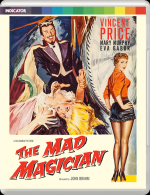 The Mad Magician - The Mad Magician(Blu Ray) [Powerhouse - 2020]The Mad Magician was directed in 1954 by John Brahm, who would go on to direct episodes of both The Twilight Zone and The Outer Limits. This Vincent Price vehicle is really interesting as it was made in the aftermath of his huge hit The House of Wax and featured a lot of the same crew, scriptwriter Crane Wilbur, producer Bryan Foy and cinematographer Bert Glennon all returned for this B picture that was also shot in 3D, as was the trend at the time. Don Gallico (Vincent Price), a master at designing magical illusions, is employed by Ross Ormond (Donald Randolph) to produce elaborate set pieces for the famous stage magician, The Great Rinaldi (John Emery). At the film’s opening Gallico is about to make his stage debut as an illusionist with a brand-new buzz saw trick that he has designed especially for himself. His assistant Karen Lee (Mary Murphy) introduces the nervous Gallico to her boyfriend police Lieutenant Alan Bruce (Patrick O’Neal) before the show, an integral part of the film’s set up. Just as Gallico is about to unveil his buzz saw illusion for the first time the curtain is dropped and the show halted, it turns out his contract with Ormond means that anything he develops becomes the property of Ormond for the exclusive use of The Great Rinaldi. Gallico is distraught and after showing Bruce his contract he realizes he is handcuffed to Ormond.