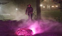 The whole thing starts fairly low key & atmospheric with drifting and moody shots of woodland, with the original stories slightly adjusted text been read over the top by Ward Phillps(Elliot Knight) a young hydrologist who we shortly meet as the family’s daughter is performing a ritual to cure her mothers cancer. As the film progress the more atmospheric edges shift back- for first typically OTT outbursts from Cage, day glow spurts of pink & the garden slowly-but-sure getting a pink tinge. With later the family/ alpacas getting more & more effected- with along the way gooey body melting & more pink tinged psychedelics- all heading towards a very tripped-out finale.